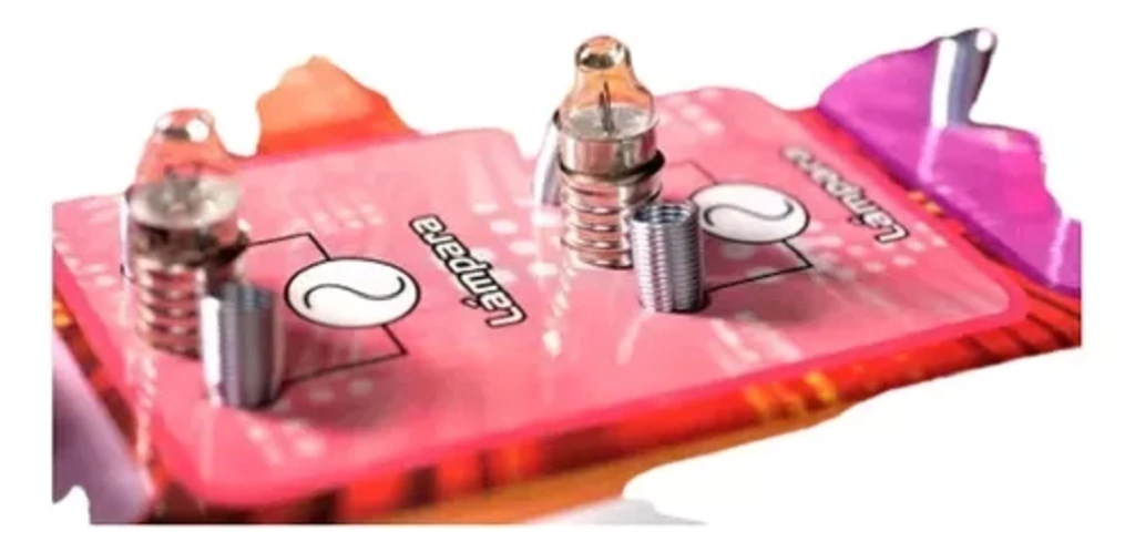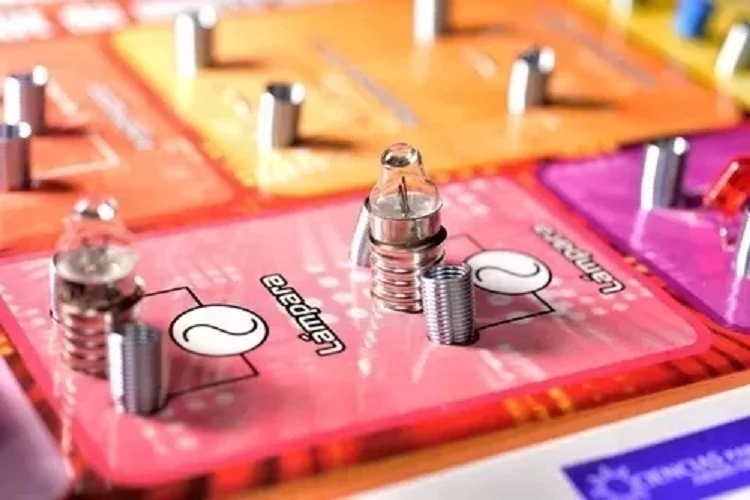 Contenido: Tablero con componentes electronicos para realizar circuitos guiados por un manual , este inlcuye: lamparas y potrta lamparas, interruptor, diodo, capacitor, resistencia, transitor, portapilas, cables, guía de actividades.