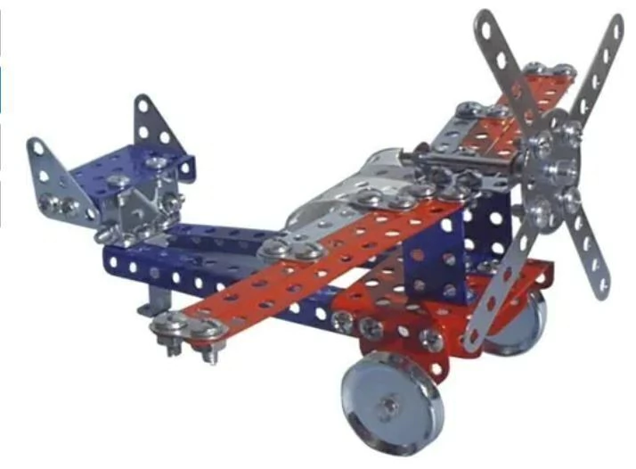 ¡Este clásico juego enseña a los niños a armar con tornillos, tuercas, bujes, poleas, ruedas, ejes y mucho mas!.