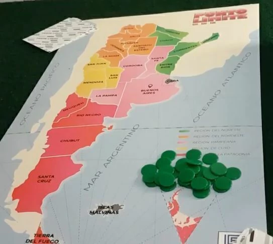 24 cartas de las provincias , 1 tablero , fichas , 1 maso de naipes, fichas señaladores, instrucciones
